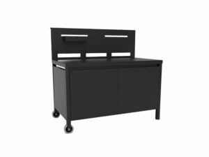 Forge Adour ofrece diferentes carros y muebles auxiliares diseñados a medida para sus planchas y barbacoas. Puedes optar por modelos con ruedas, estantes y espacio para bombonas, o bien por módulos integrados si ya dispones de una cocina de exterior. La combinación entre funcionalidad y estética está pensada para integrarse perfectamente en jardines, terrazas o porches.