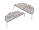 Con nuestro juego de dos parrillas de acero inoxidable en forma de media luna, puede duplicar la superficie de parrilla disponible y aprovechar al máximo la versatilidad que ofrece la barbacoa Monolith.