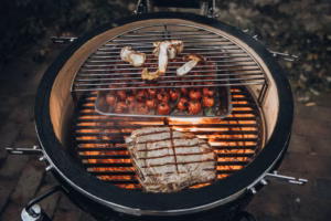 Coloque una o las dos parrillas sobre la parrilla normal y, en combinación con el divisor de la cesta de carbón y los deflectores de calor, podrá crear diferentes zonas de calor.